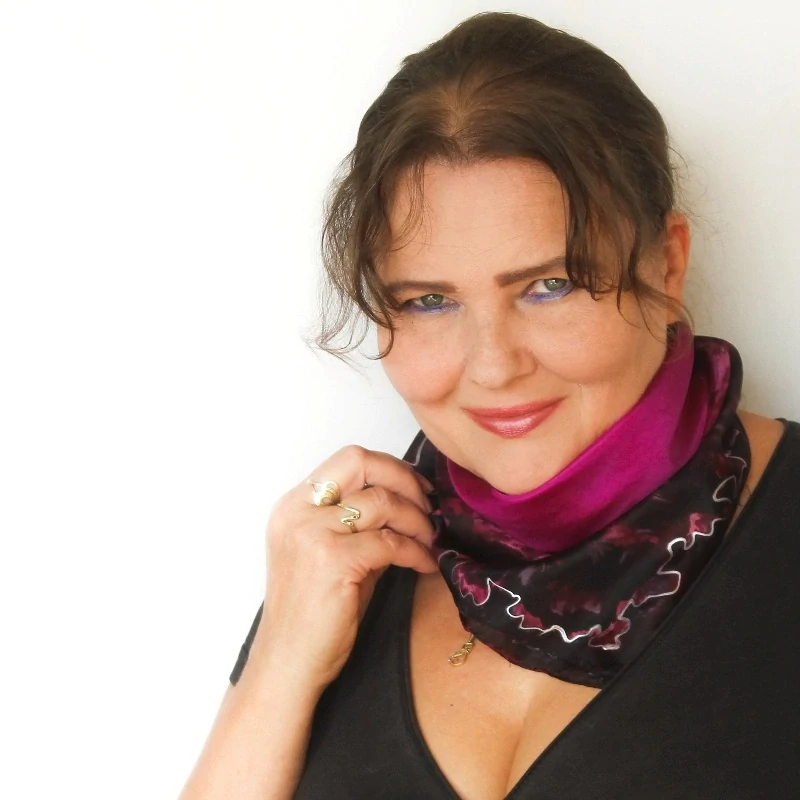 Barvy: profesionální s parní fixací pro zachování hebkosti a lesku hedvábí v odstínech fuchsiové uprostřed a bordo a černé na okraji, doplněno stříbrnou konturou, černý okraj