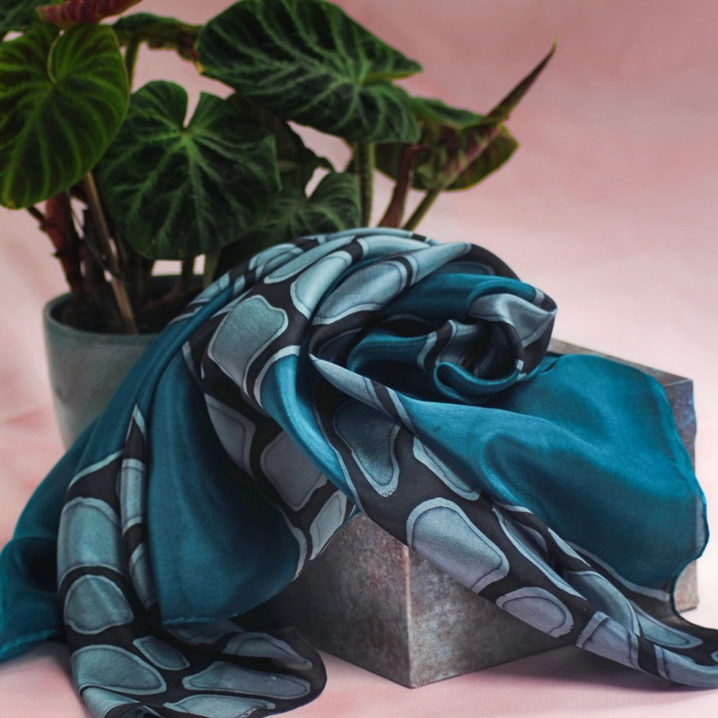 - Hedvábný šátek - Šedo petrolejové oblázky