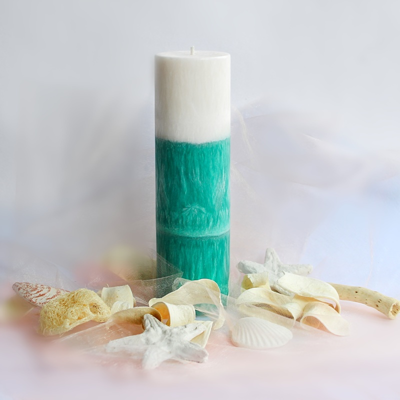 - Svíčka ve tvaru válce - Bílo smaragdová tříbarevná