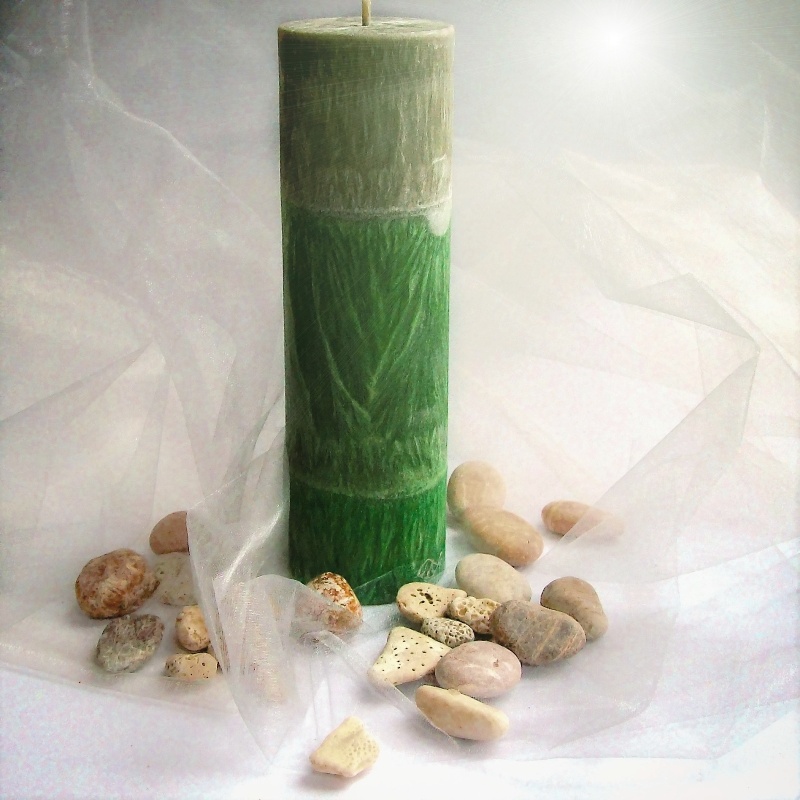 - Svíčka ve tvaru válce - Šedo zelená tříbarevná