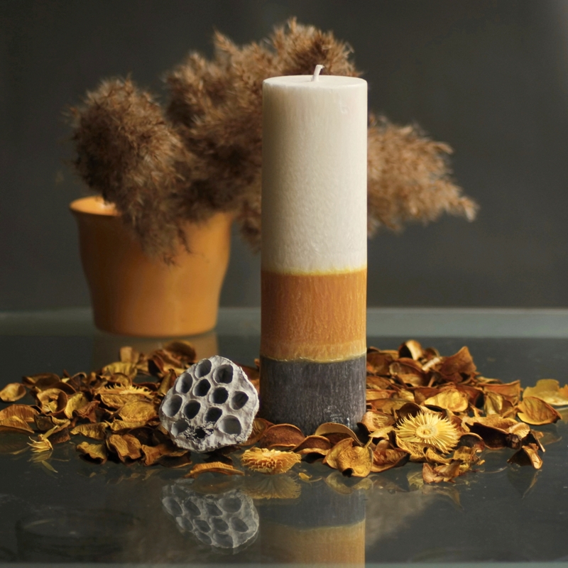 - Svíčka ve tvaru válce - Žluto šedo bílá